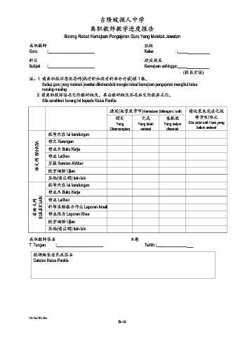 Borang Rekod Kemajuan Pengajaran Guru Yang Meletak Jawatan