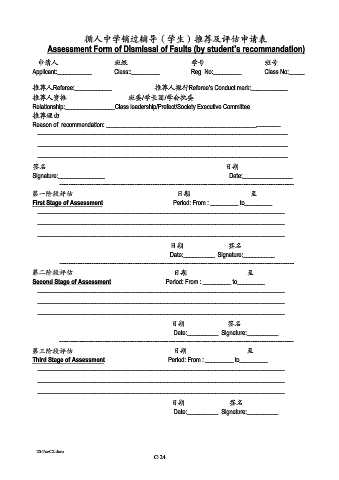 推荐人Referee:____________ 推荐人操行Referee’s Conduct mark:____________