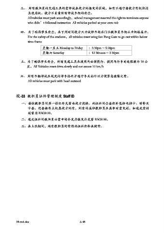三、 所有教职员的交通工具均需停放在校方所指定的区域,如有不遵守者校方有权取消