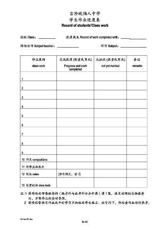 班级 Class: ___________ 进度截至 Record of work completed until:_________________