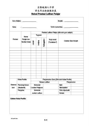 Perstasi Latihan Pelajar (diisi oleh guru subjek)